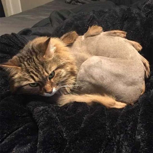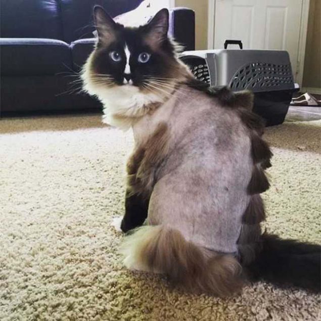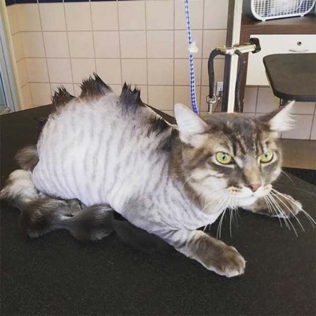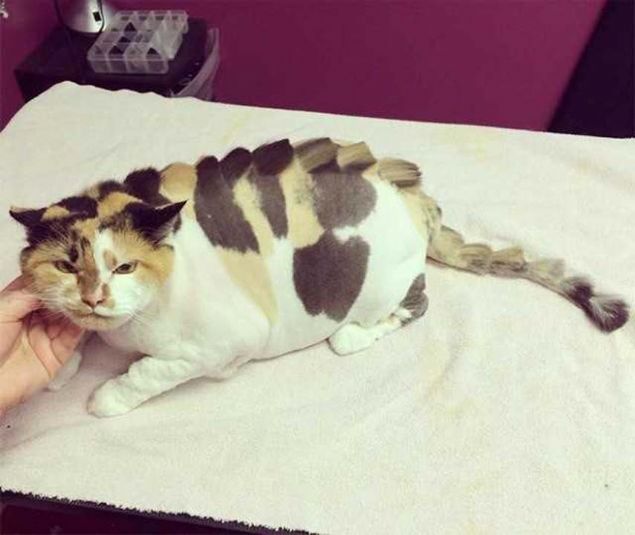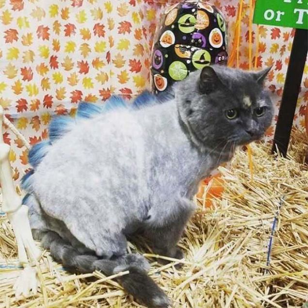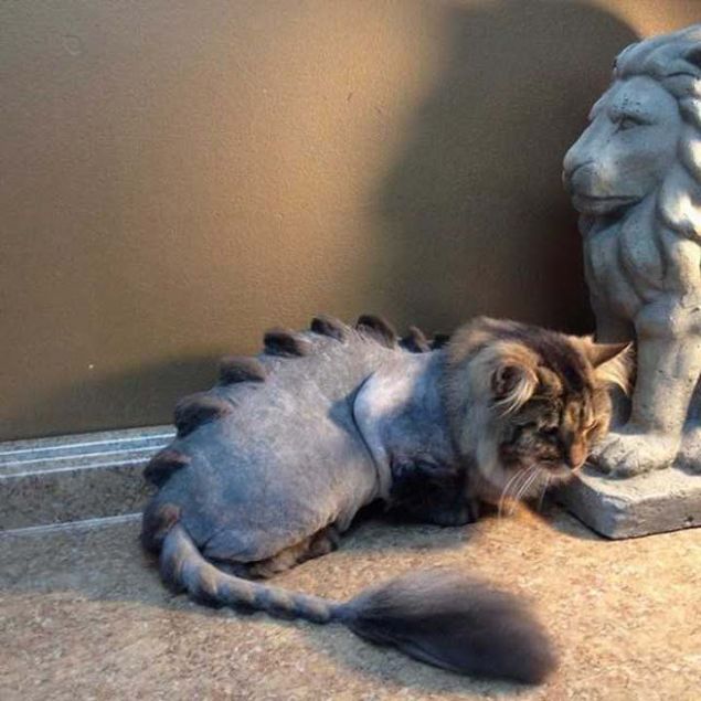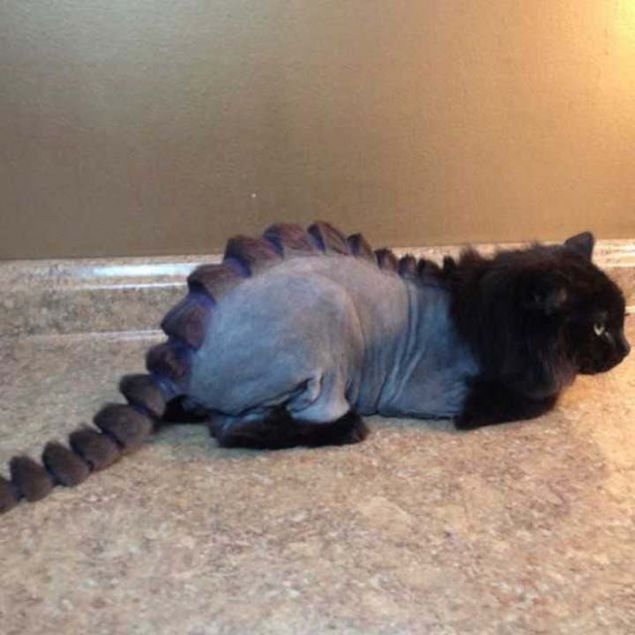 İnsanların kedilerine tüylerini keserek verdikleri dinazor şekli, görenleri hem güldürdü hem de şaşırttı.