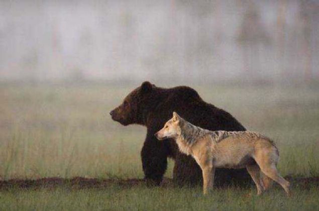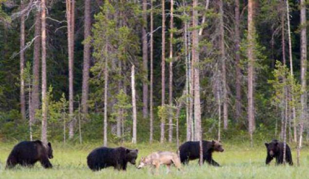 Bir kaç dakikalık mücadele sonucu başarılı olamayacağını anlayan kurtlar ayıyı yalnız bırakmaya karar verdi...