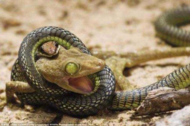En tehlikeli hayvanlardan olan yılanların avlanma görüntüleri, doğanın vahşi kanunlarını bir kez daha gözler önüne seriyor.