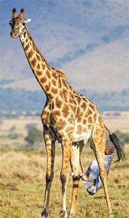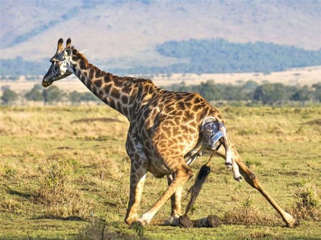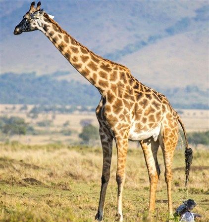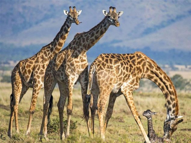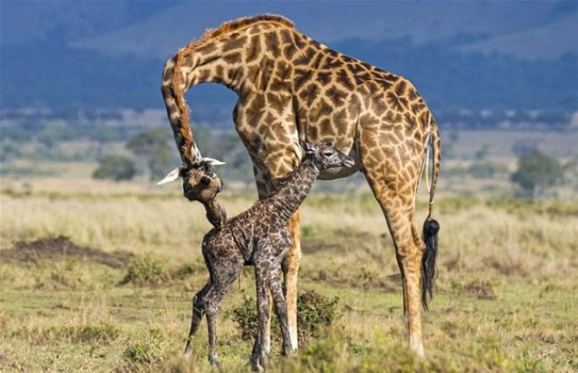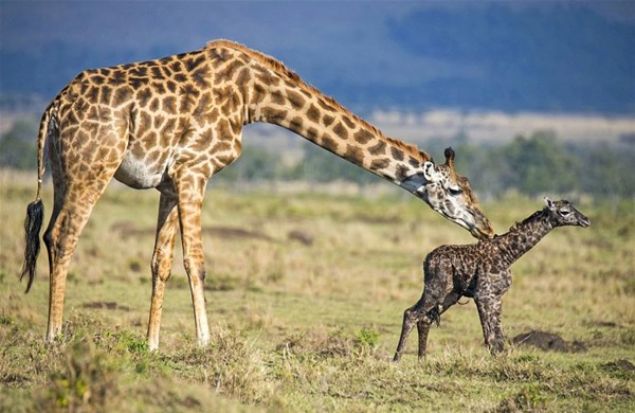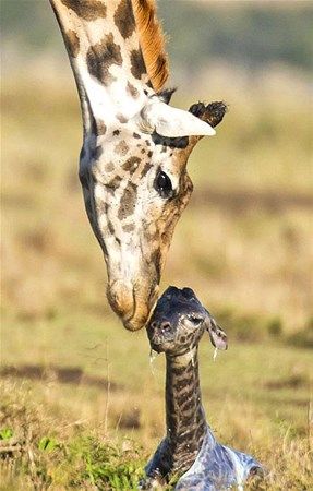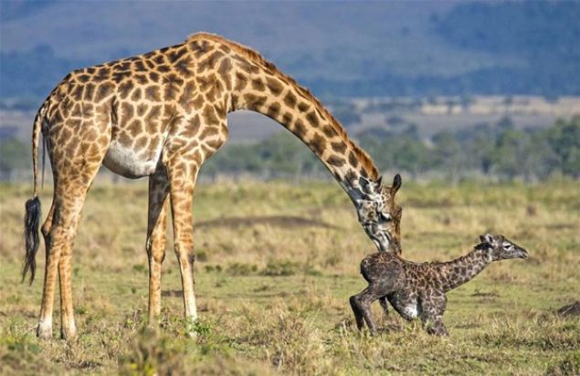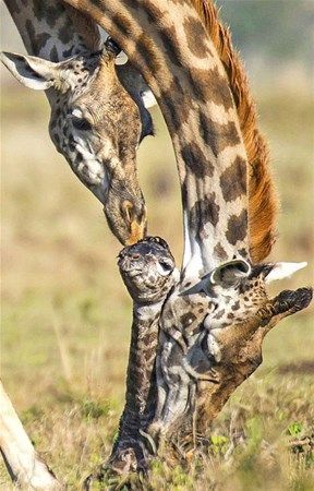 Kenya'da fotoğraf karelerine minik bir zürafa yavrusunun doğum anı takıldı. Yaklaşık 30 dakika süren ve annesinin dört ayak üzerinde durarak dünyaya getirdikten sonra koklayarak ve yalayarak güven vermeye çalıştığı yavrunun ürkek bakışları dikkat çekti. İşte o anlar...