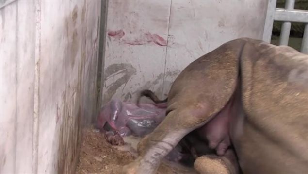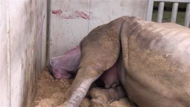 Doğanın korkutan hayvanlarından gergedanın doğum anı ve sonrasında yaşananlar böyle kaydedildi.