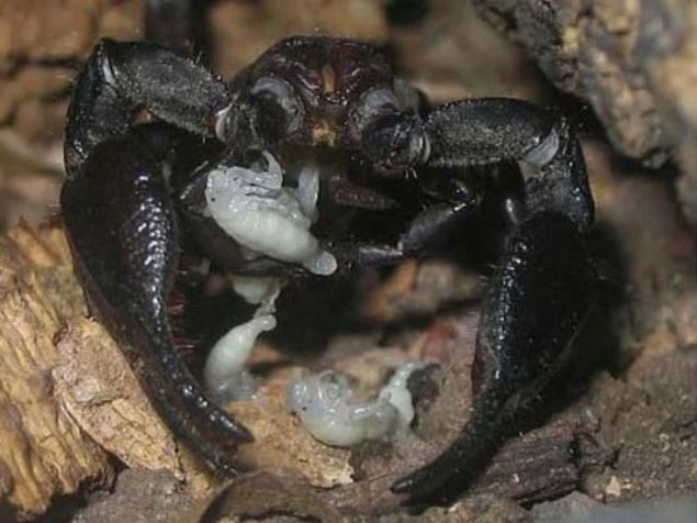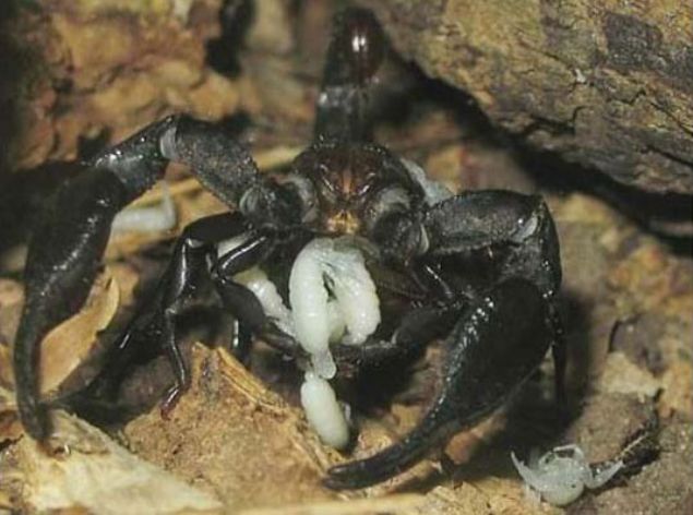 Akrep yavrusu doğumdan sonra bir süre annenin sırtında taşınır...