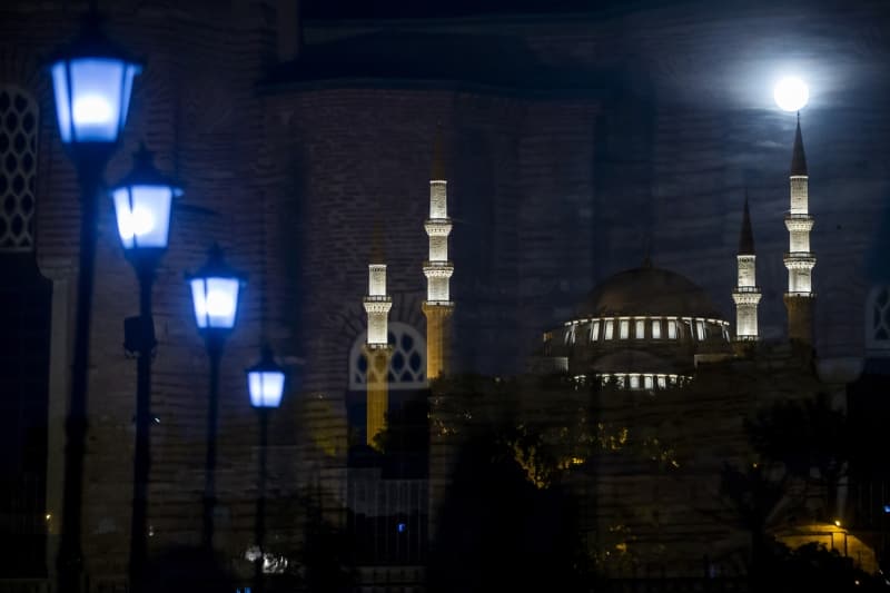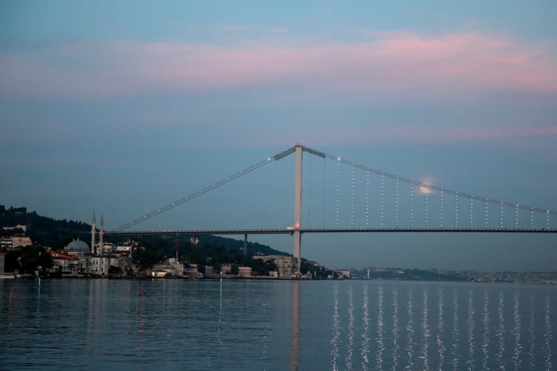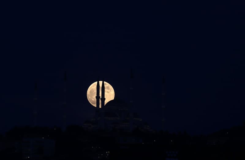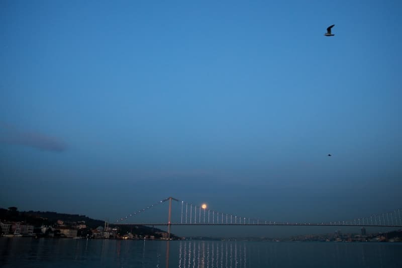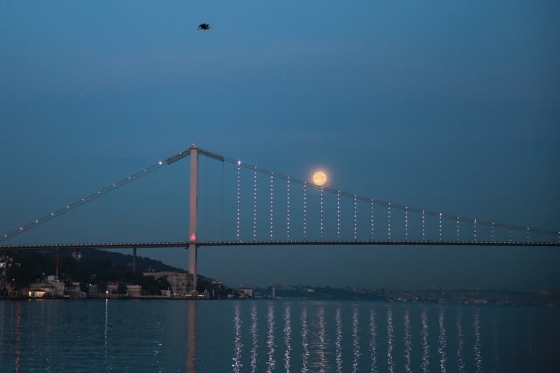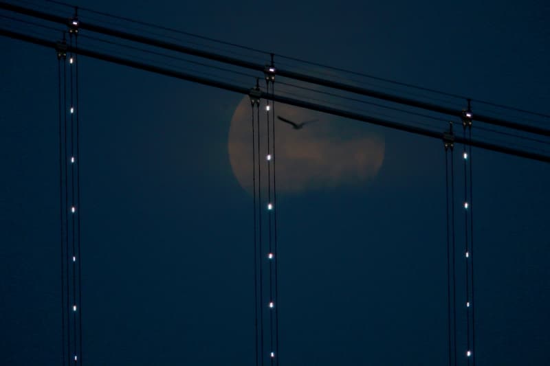 İstanbul'da dolunay, 15 Temmuz Şehitler Köprüsü ile güzel görüntü oluşturdu.