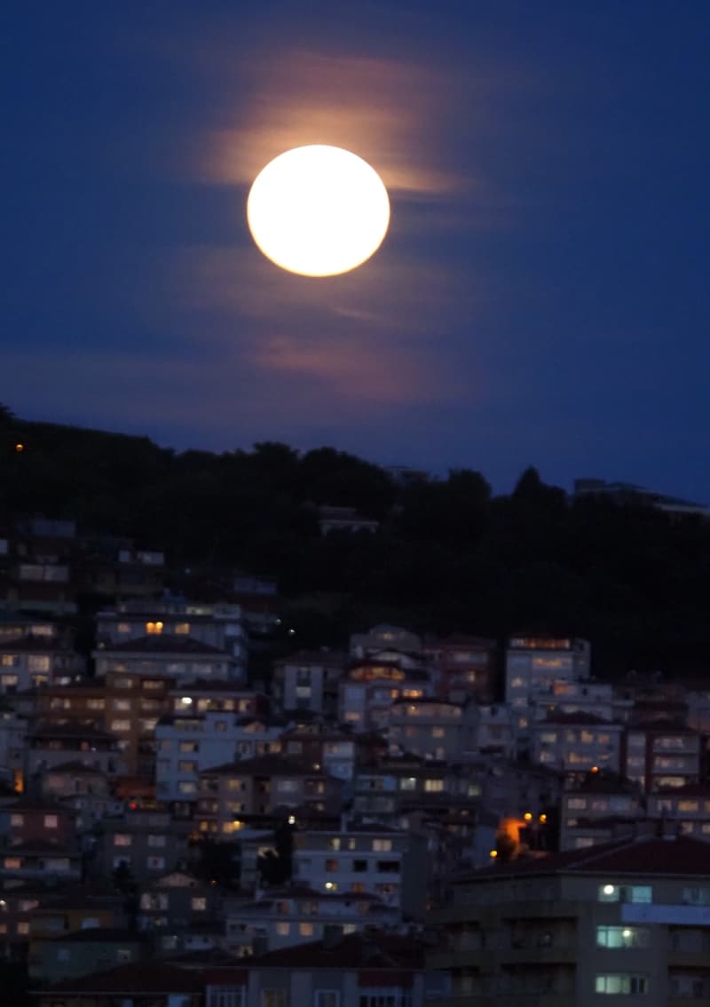 İstanbul'da dün akşam saatlerinde beliren dolunay doyumsuz manzaralar oluşturdu. İstanbul'un yanı sıra Van, Hatay, Ankara ve Muş gibi illerden de dolunay fotoğrafları geldi.