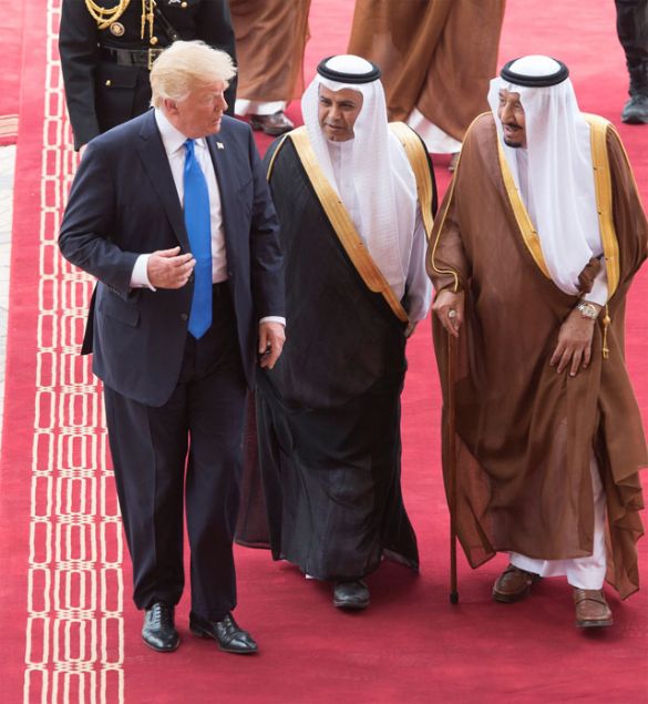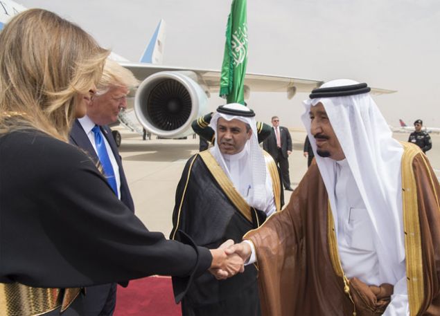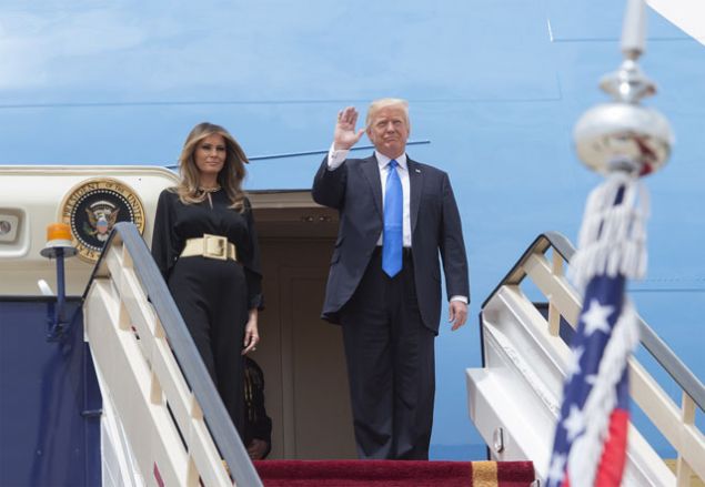 Göreve geldikten 4 ay sonra ilk yurt dışı seyahatini yapan ABD Başkanı Donald Trump Suudi Arabistan'da. Trump'ın uçağını karşılamaya gelen heyetin başında, Suudi Kral Selman yer aldı.