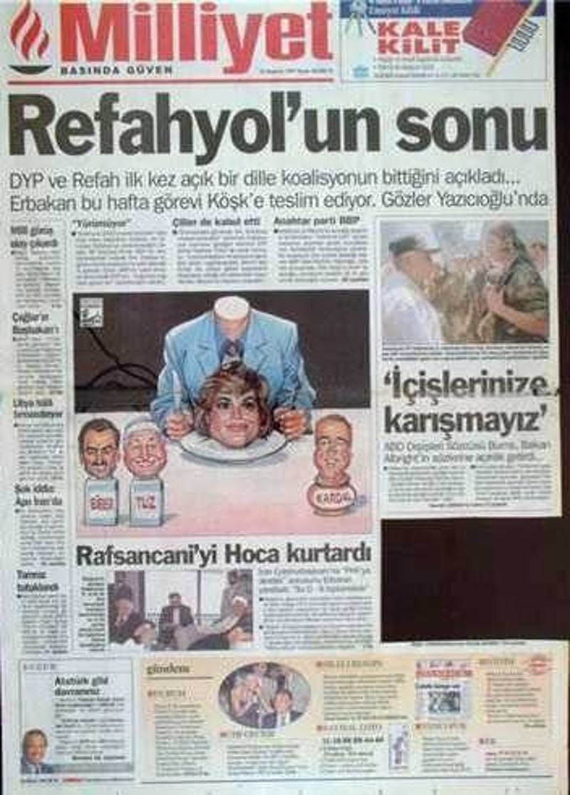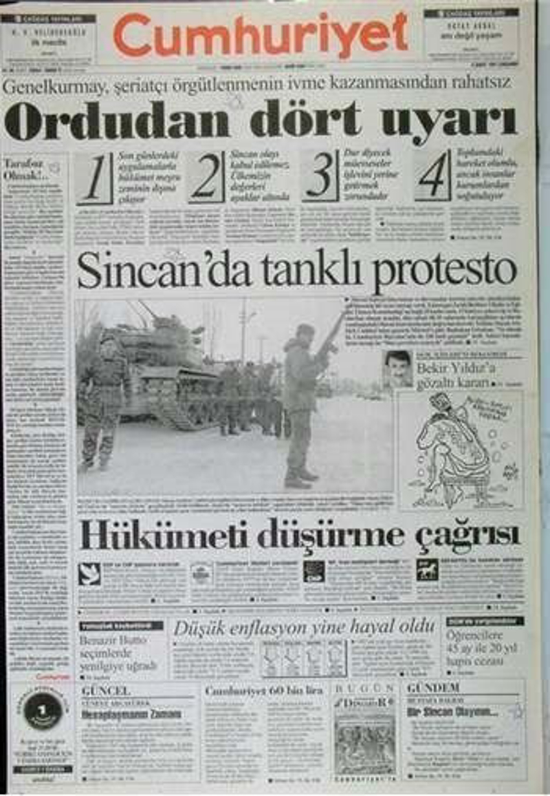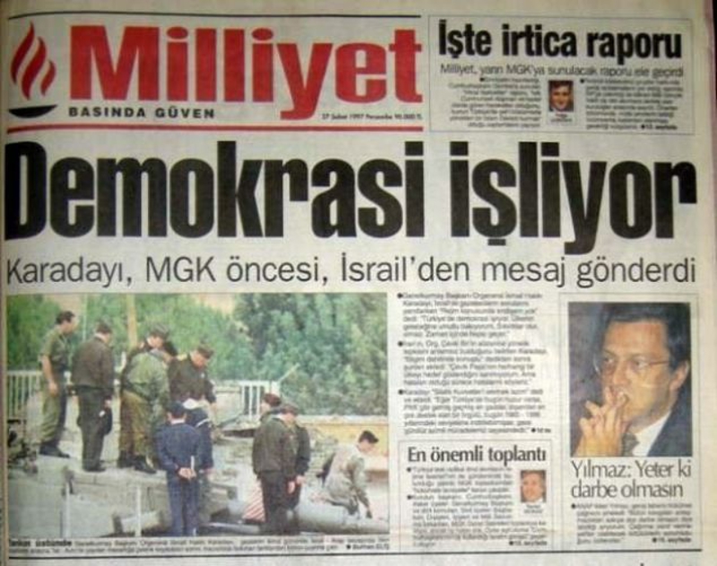Seçilmiş hükümete el çektirilmesi, ordu, bürokrasi ve sivil hayata müdahale, vatandaşların temel hak ve hürriyetlerden mahrum bırakıldığı, insanlık suçlarının işlendiği 28 Şubat darbesine, dönemin medyası tarafından işte bu manşetlerle destek verilmişti...