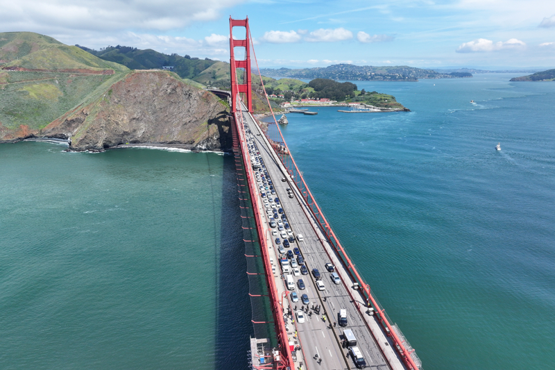 San Francisco'daki Golden Gate Köprüsü, sabah saatlerinde onlarca Filistin destekçisi göstericinin Gazze'ye destek gösterisine sahne oldu.