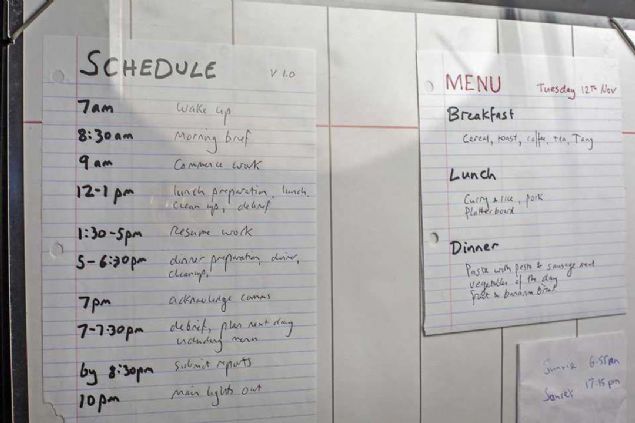 Astronotlar ve araştırma ekipleri, Hab olarak da bilinen iki katlı, sekiz metrekarelik silindirik 'Habitat' ta iki hafta geçiriyor.