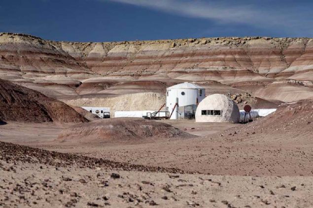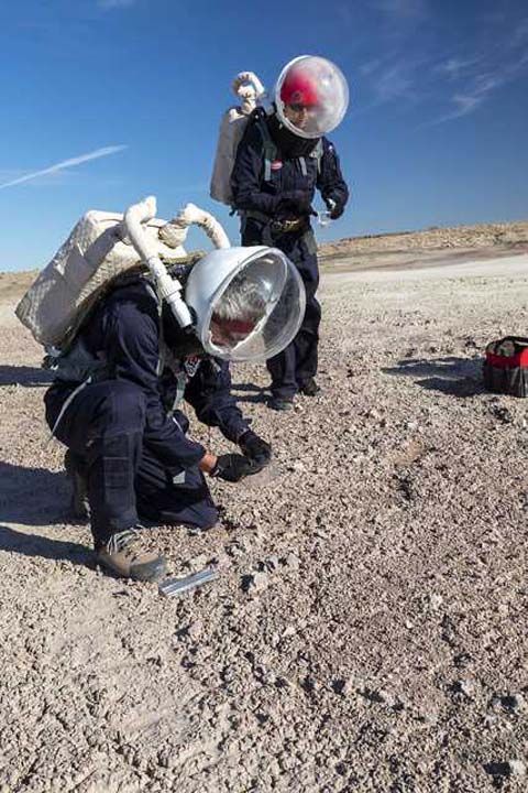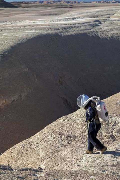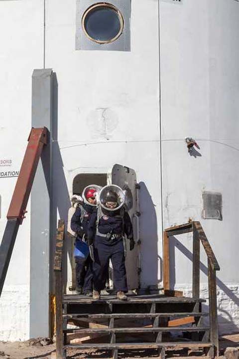 Hab dışına çıktıklarında simüle edilmiş Mars ortamına giriyorlar.