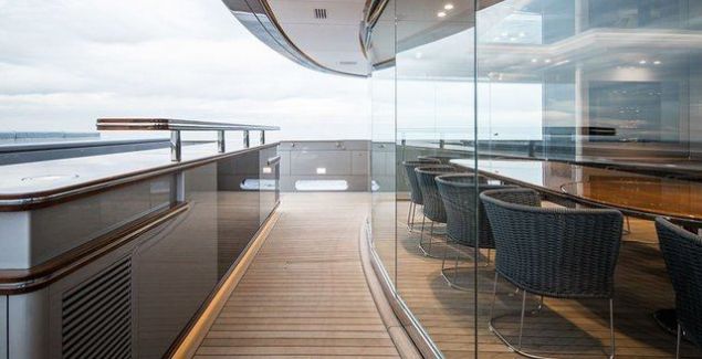 Espen Qeino tarafından 2015 yılında dizayn edilen yatın ana güvertesinde panoramik büyük pencereler bulunuyor.