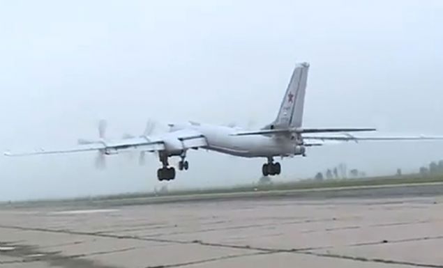 Görüntülerde, Tu-95MS stratejik bombardıman uçaklarının, Rusya'da açıklanmayan bir havaalanında yola çıktığı görülüyor.