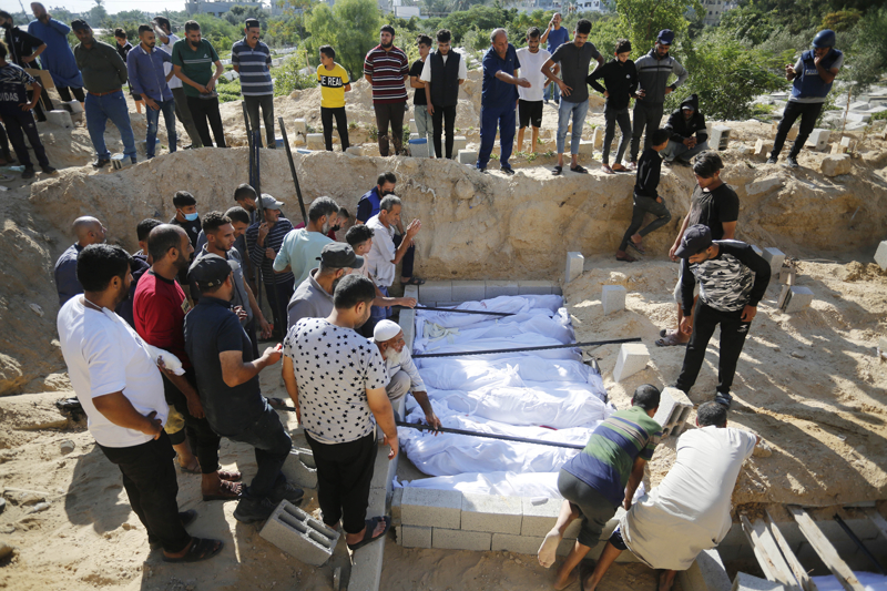 Gazze'nin Deyr Belah kentine düzenlenen saldırılarda hayatını kaybeden Filistinliler, toplu mezarlarda defnedildi.