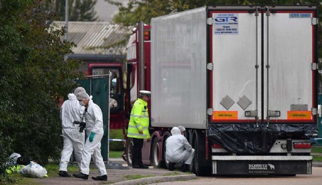 Essex polisince yapılan açıklamada, ihbar üzerine Waterglade Sanayi Sitesi'ndeki bir TIR dorsesinde yapılan incelemede 39 ceset bulunduğu belirtilmişti.