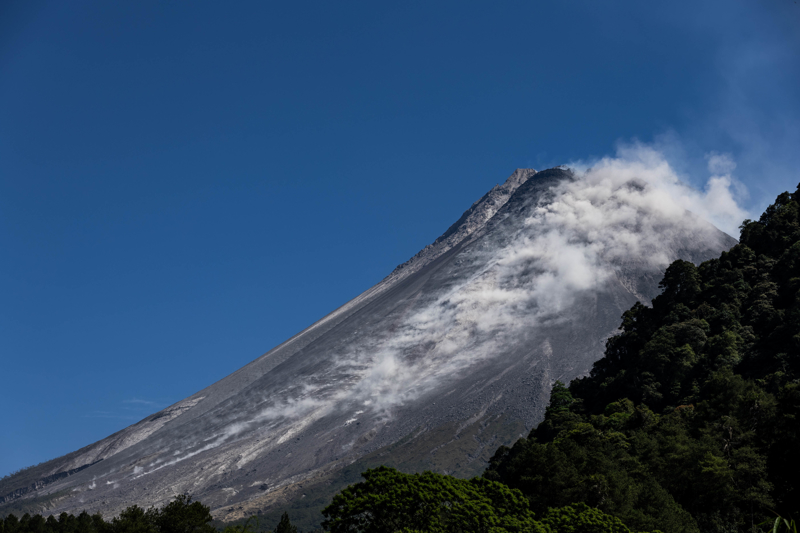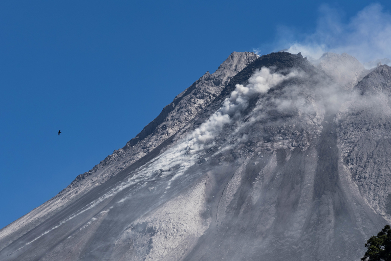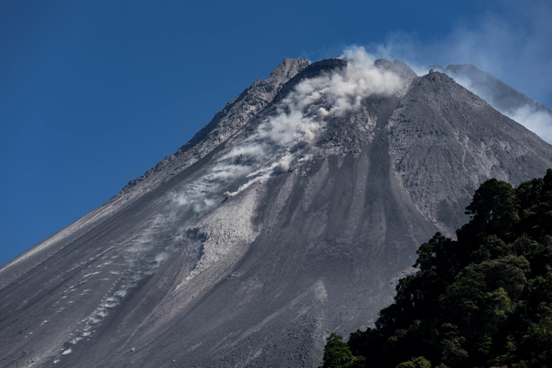 Java Adası'nda bulunan ve Endonezya'nın en aktif yanardağı Merapi'den püsküren sıcak kül bulutları, kaya, lav ve gaz karışımı, yamaçlardan 7 kilometre kadar aşağı indi.