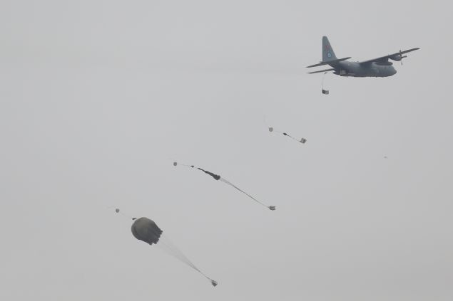Tatbikat senaryosu kapsamında 12. Hava Ulaştırma Ana Üs Komutanlığından havalanan C-130 ve C-160 tipi nakliye uçaklarındaki 120 paraşütçü komando, bölgeye indirme yaptı.