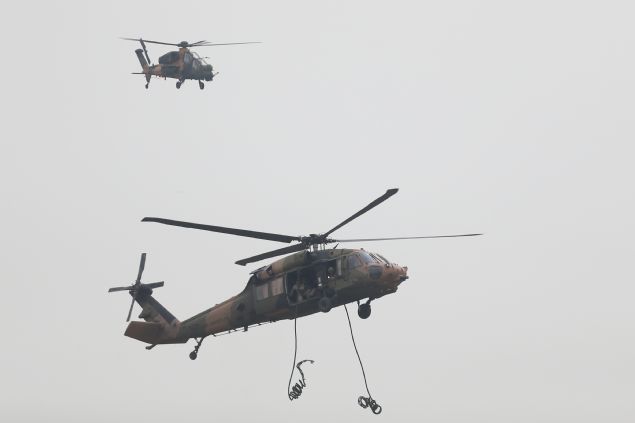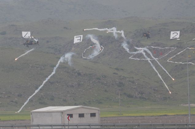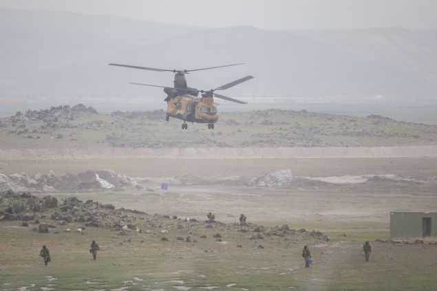 Chinook tipi iki helikopterin de kullanıldığı tatbikatı, 4. Kolordu Komutanı Korgeneral Ali Sivri, Kayseri Garnizon Komutanı Tuğgeneral Ercan Teke, askeri yetkililer ve 33 ülkeden 39 askeri ateşe izledi.