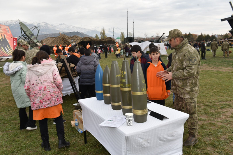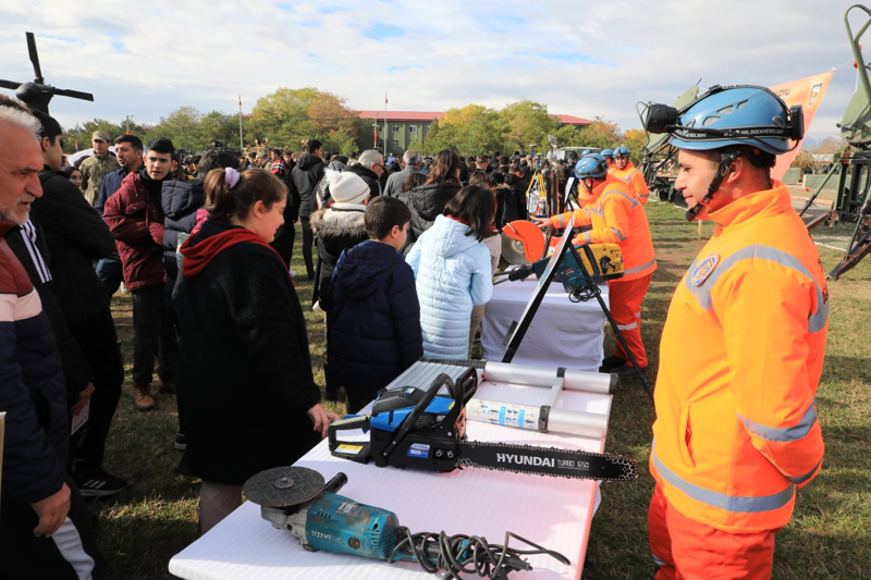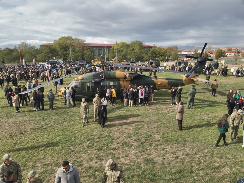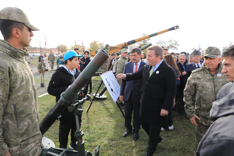 3. Ordu Komutanlığı General Mehmet Kazım Orbay Kışlası'ndaki programda, gaziler, öğrenciler ve protokol Türk Silahlı Kuvvetlerine ait harp araç gereçlerini inceledi.