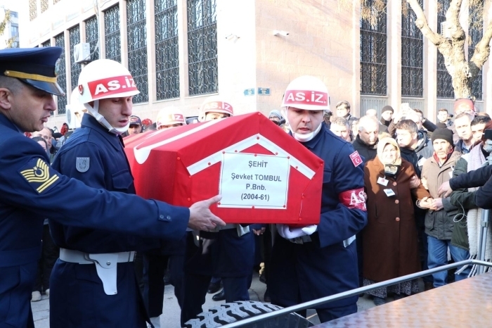 Evli ve 2 çocuk babası şehit Şevket Tombul'un cenazesi, Şanlıurfa'da düzenlenen uğurlama töreninin ardından uçakla Eskişehir'e getirildi.