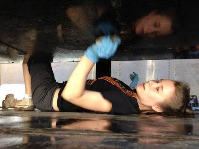 Adam ilk önce yüzeydeki kiri ve pası temizledi.