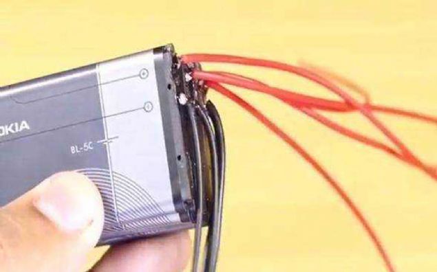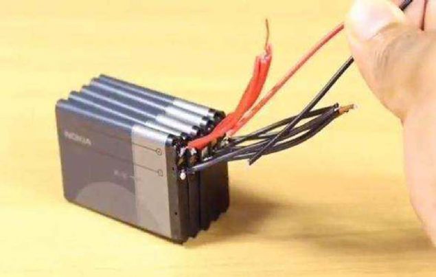 Bataryanın üzerine tutkal yapıştırıyoruz ve dört tane daha eski Nokia telefonların bataryasından buluyoruz.