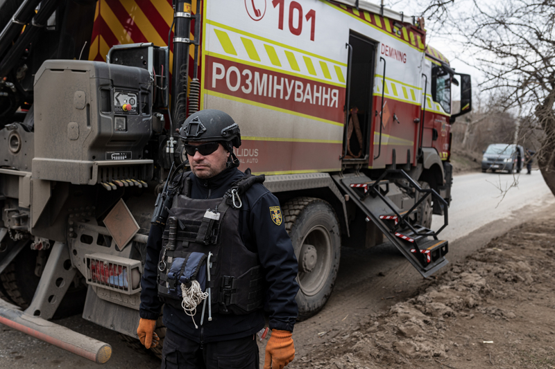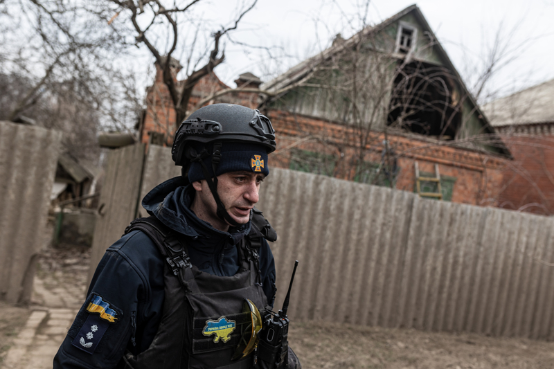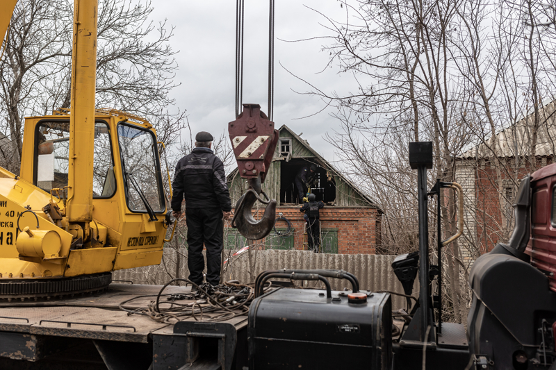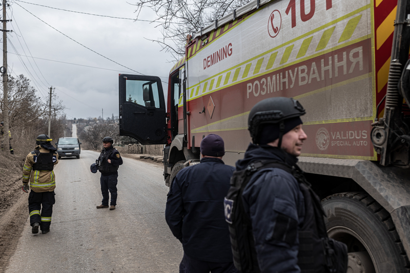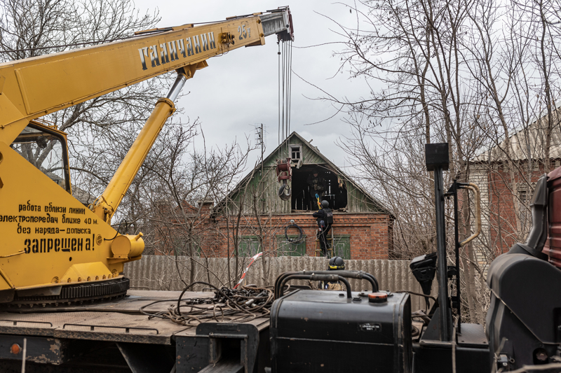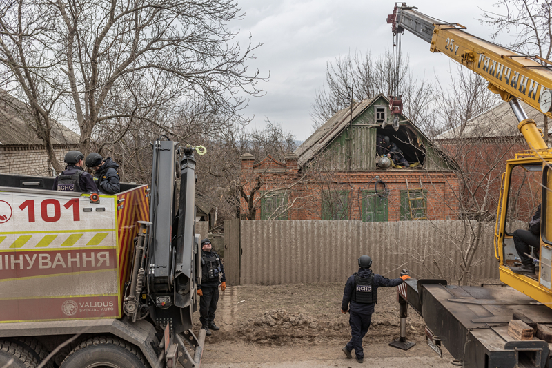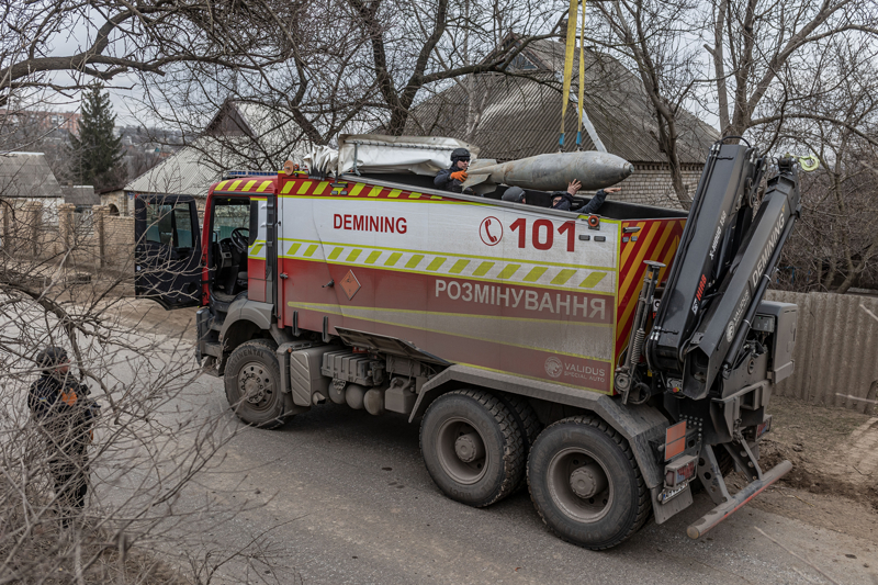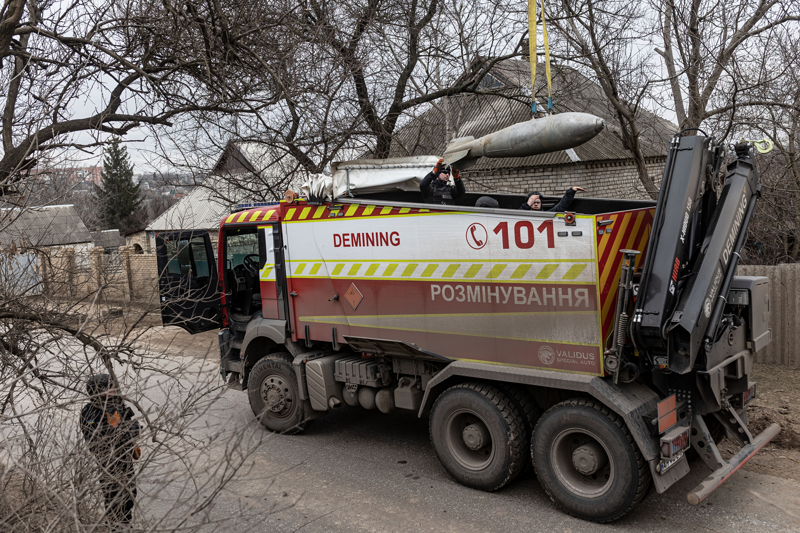 Patlamamış bomba, Ukraynalı profesyonel ekipler tarafından evden çıkartılarak güvenli bölgeye taşındı.