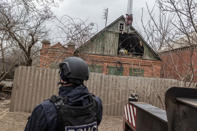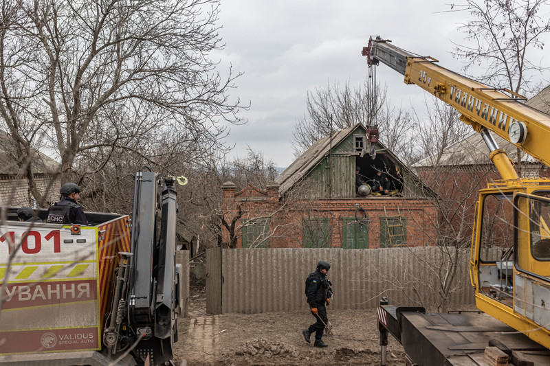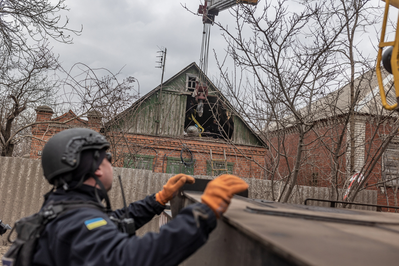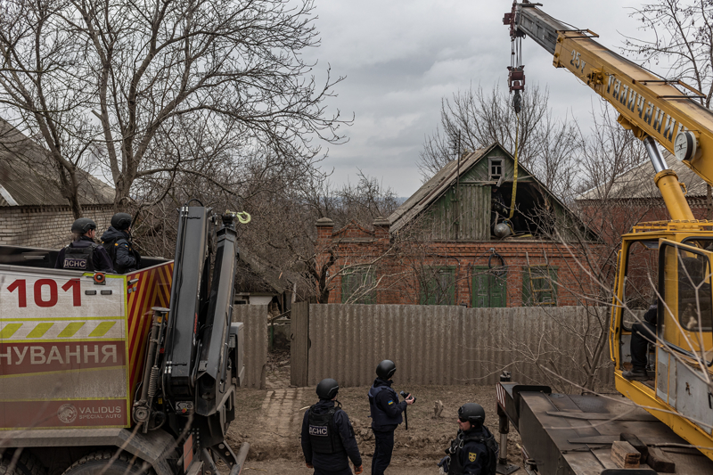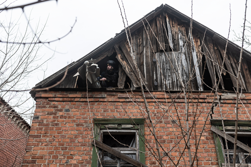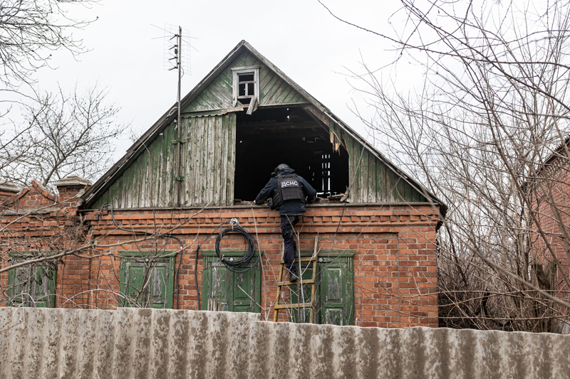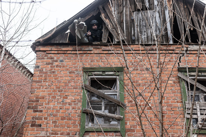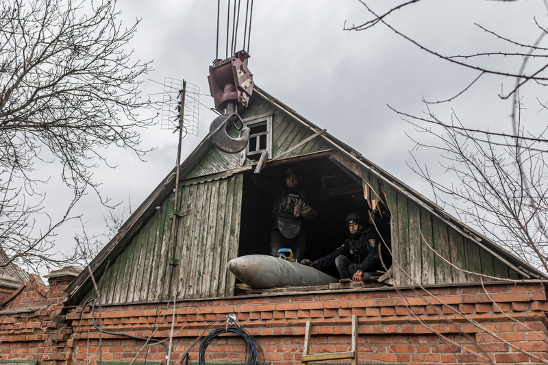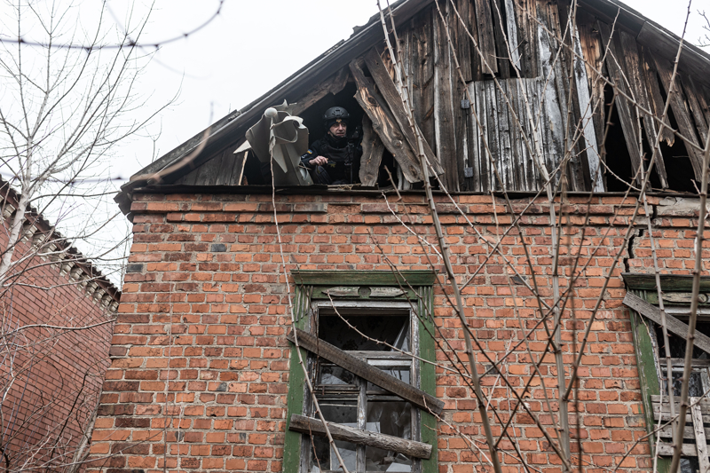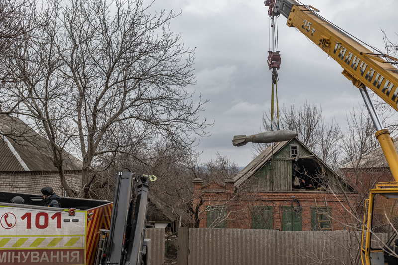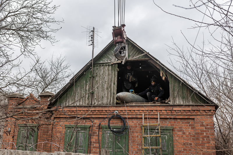 İki yılı geride bırakan Rusya ile Ukrayna arasındaki savaş, üçüncü senesinde de tüm şiddetiyle devam ederken Ukrayna'nın Kostiantynivka kentindeki bir evin çatı katında Rus hava saldırılarından kalan patlamamış bomba bulundu.