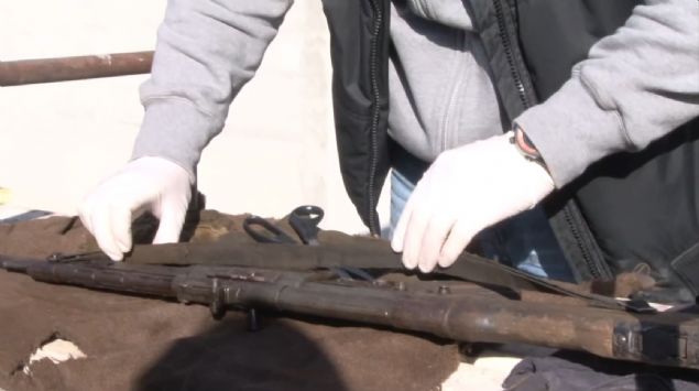 İkinci Dünya Savaşı sırasında Nazi Almanyası tarafından tasarlanan Stg 44 tüfeği bir beze sarılmış halde bulundu.