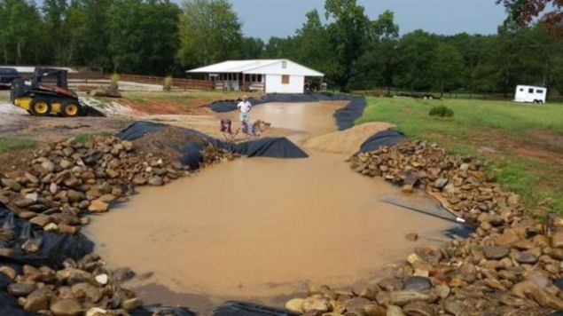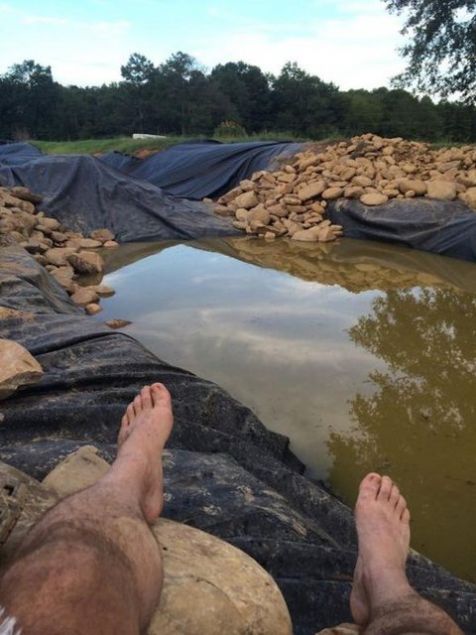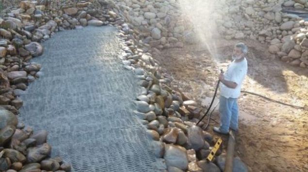 Projeye başlamadan önce gölü yapacağı sınırları belirledi ve iki küçük çocuğunun yardımıyla toprağı kazma işine başladı.