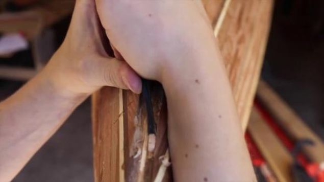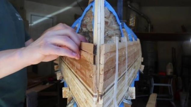 Önce kayığın planını yapan Koekkoek, daha sonra tahtaları kesmeye koyuldu.
