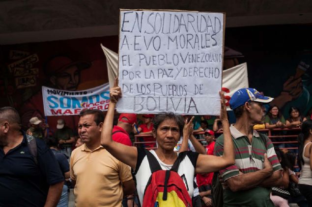 Venezuela'nın başkenti Caracas'ta Devlet Başkanı Nicolas Maduro taraftarları, istifa eden Bolivya eski Devlet Başkanı Evo Morales'e destek gösterisi düzenledi.