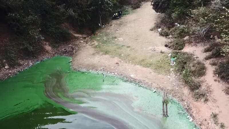 Eyüpsultan'da hayrete düşüren görüntü! Göle kimyasal atık boşalttılar