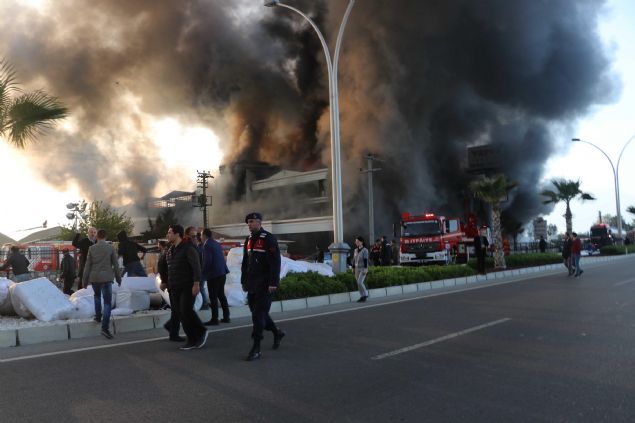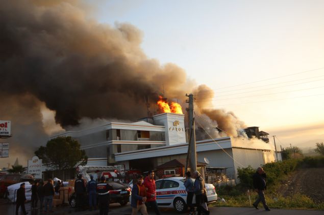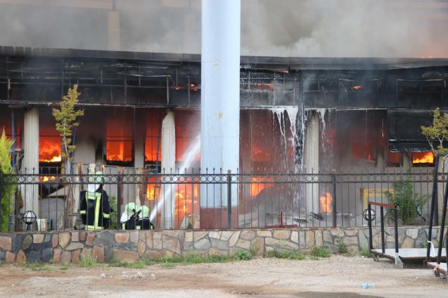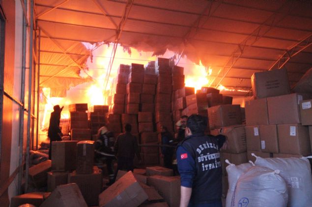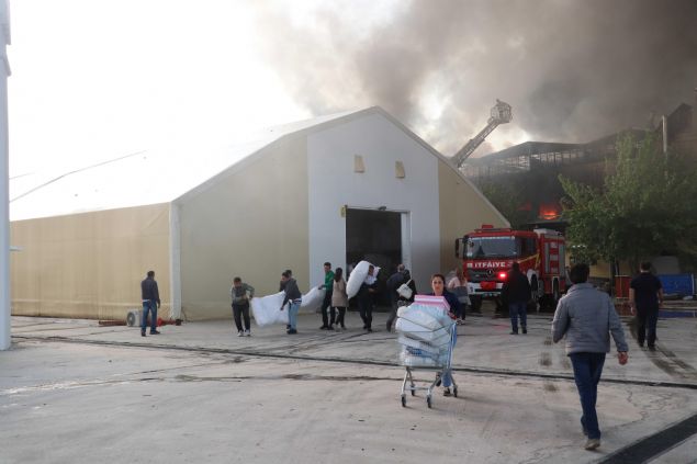 Turistler için satış mağazası da bulunan tesise gelen çalışanlar, depodaki malzemeleri yangından kurtarmak için seferber oldu.