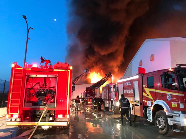 Üretim ve satış yapılan 3 katlı fabrikadaki yangına, Denizli Büyükşehir Belediyesi İtfaiye Daire Başkanlığında görevli 130 kişilik ekip ve 45 araçla müdahale edildi.