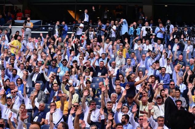 Bu arada Ali Koç'u destekleyen üyeler Fenerium alt tribününde sağ tarafta yer alırken, Aziz Yıldırım sempatizanlarının ise Fenerium alt tribünü orta kısmında oturdukları görüldü.