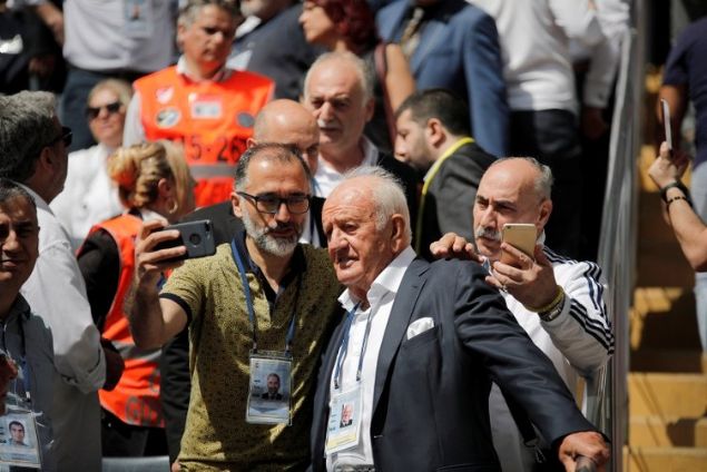Uzun süre yapılan tezahüratlara el sallayarak cevap veren Koç, daha sonrasında tribündeki yerini aldı.