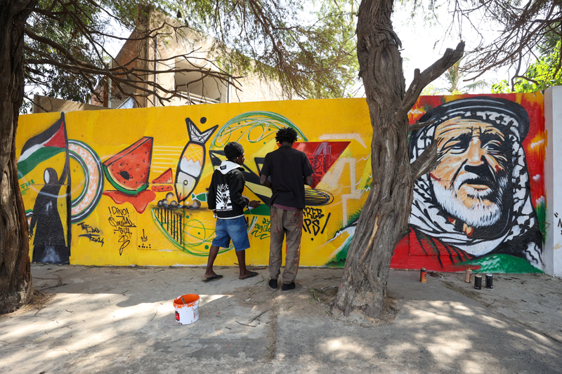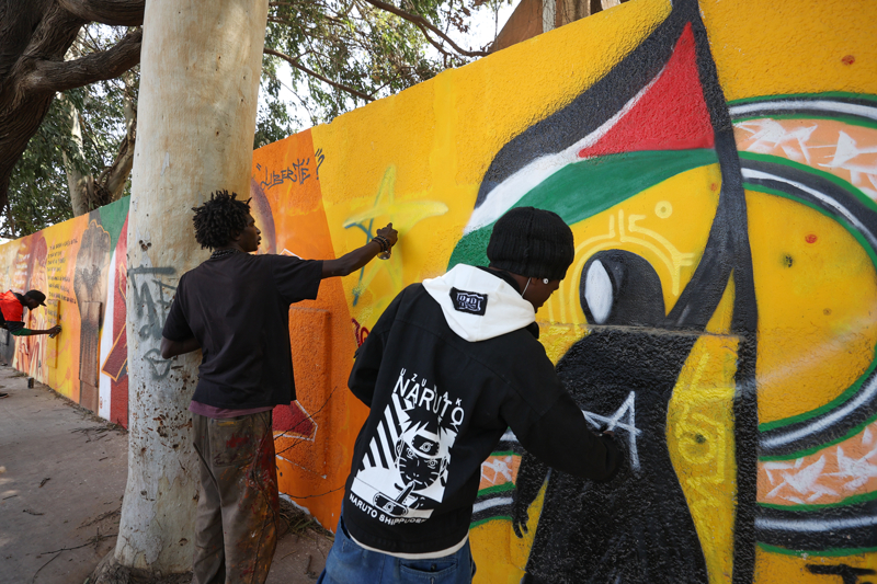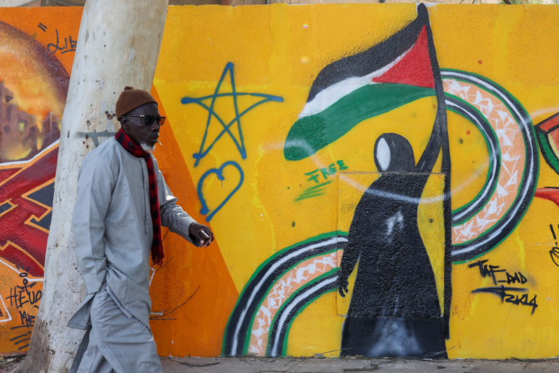Dakar'ın Ouakam Mahallesi'nin en işlek caddesinde duvarlara çizilen grafitilerin üzerine birkaç gün önce kimliği belirsiz kişi ya da kişilerce İsrail bayrağı çizilerek, Filistin'e hakaret içeren mesajlar yazıldı.