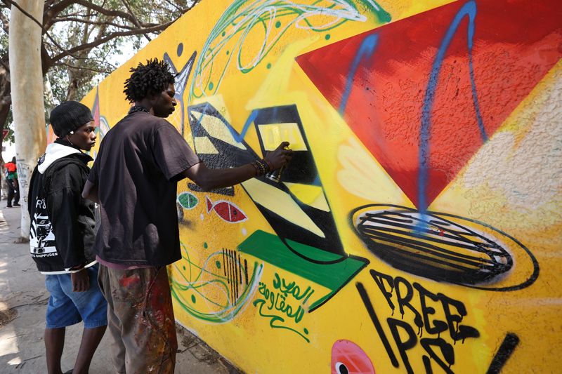 RBS Başkanı grafiti sanatçısı, 'Madzoo' ismiyle de bilinen Serigne Mansour Fall, AA muhabirine yaptığı açıklamada, çizimlerin siyonistlerin saldırısına uğradığını söyledi.