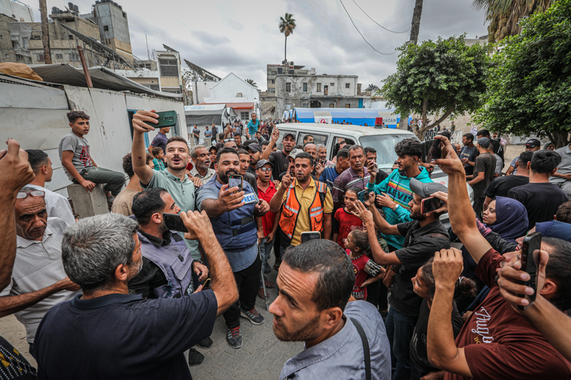 Gazze'de sağlanan ve yürürlüğe girmesi beklenen ateşkes anlaşmasının duyurulmasının ardından Gazze'deki El Ehli Baptist Hastanesi önünde toplanan Filistinliler, sevinç gösterilerinde bulundu.