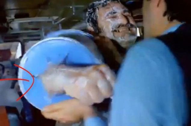 'Neşeli Günler' filminde turşu dükkanında geçen sahnede turşu kavanozlarının arasında bir set çalışanının eli görünüyor.