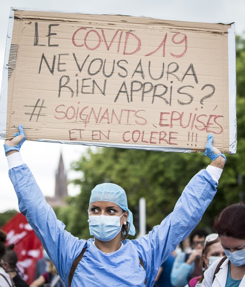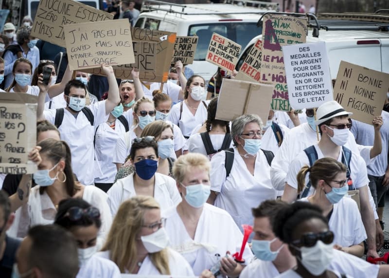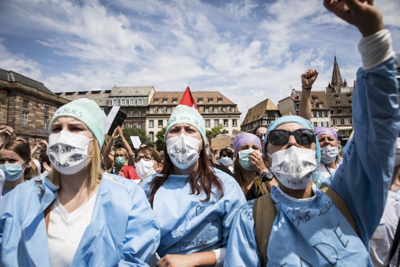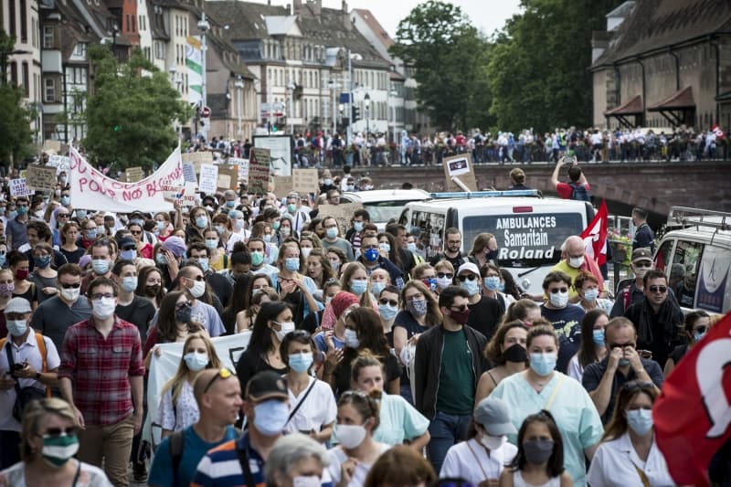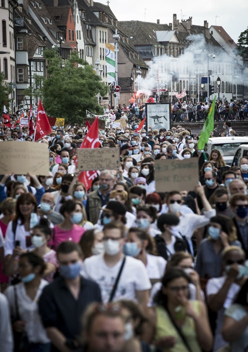 Fransa'da sağlık çalışanları, çalışma koşullarını protesto etmek için ülke genelinde gösteriler düzenlerken, Strasbourg'da gösterilerin merkezi Bölgesel Sağlık Ajansı yakını oldu.