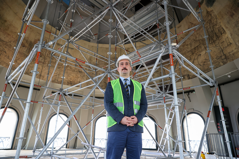 Galata Kulesi Müzesi Müdürü Murat Bozcu, AA muhabirine yaptığı açıklamada, kasım ayının başında 8. teras katının çalışmalardan dolayı ziyarete kapatıldığını belirterek, kulenin külahında dışarıdan ve içeriden iskele kurulduğunu söyledi.