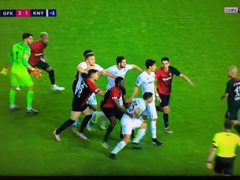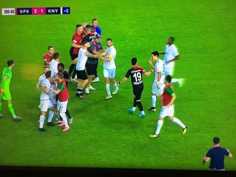 Futbolcular soyunma odasına giderken, maçın hakemi Hüseyin Göçek, oyuncuları geri çağırdı.