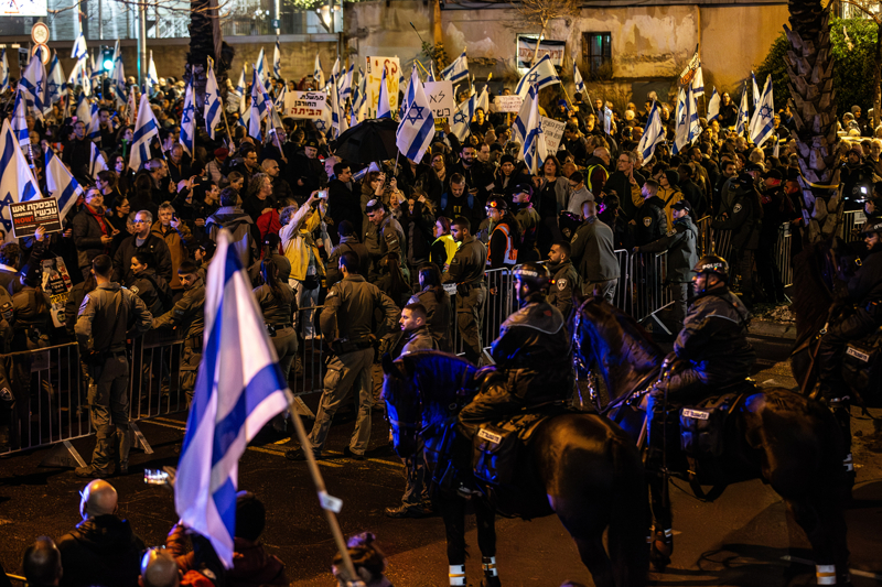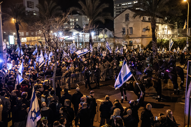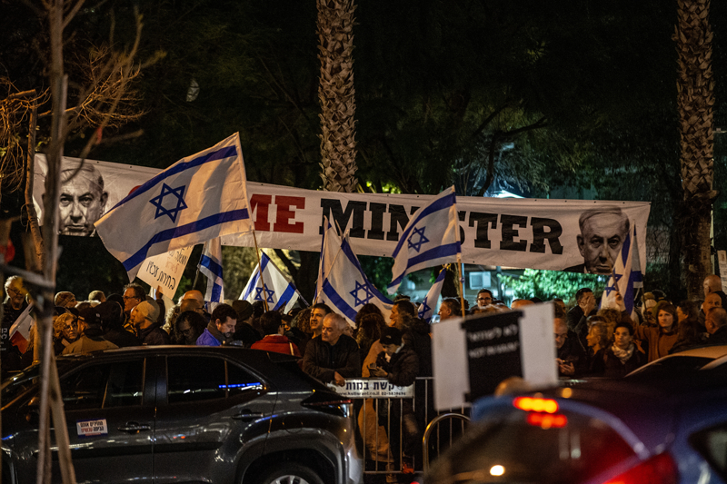 Batı Kudüs'te Cumhurbaşkanı Isaac Herzog'un konutunun önünde yüzlerce gösterici hükümetin istifası talebiyle protesto gösterisi yaptı.