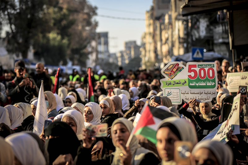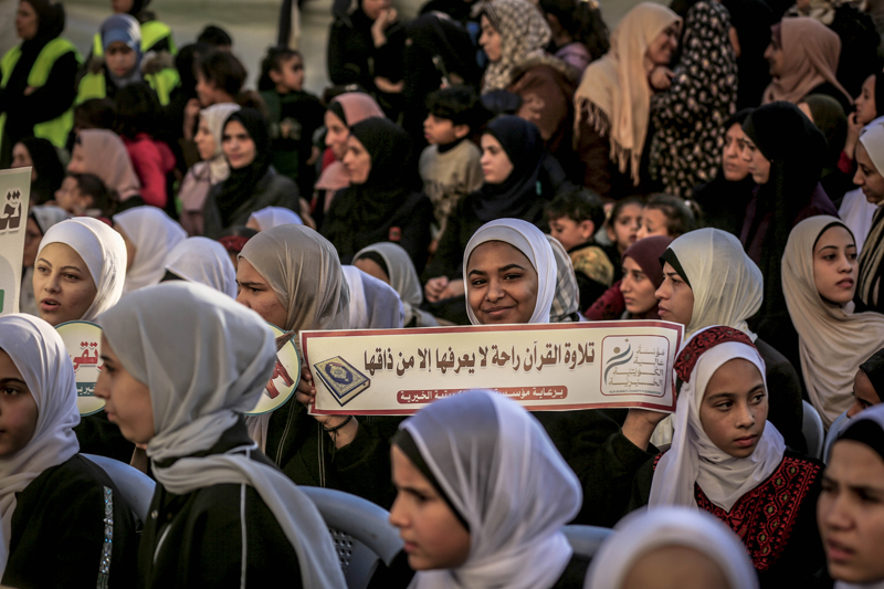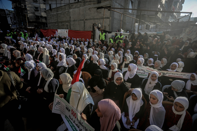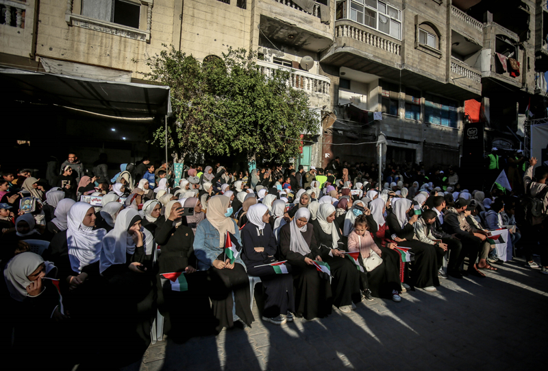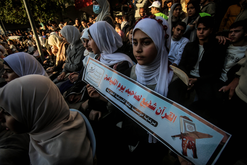 Gazze Şeridi'nin batısında bulunan eş-Şati Mülteci Kampı'ndaki Yusuf el-Azma Caddesi'nde, Kur'an-ı Kerim'i ezberleyen 500 kız ve erkek öğrenci için geniş katılımlı bir mezuniyet töreni düzenlendi.