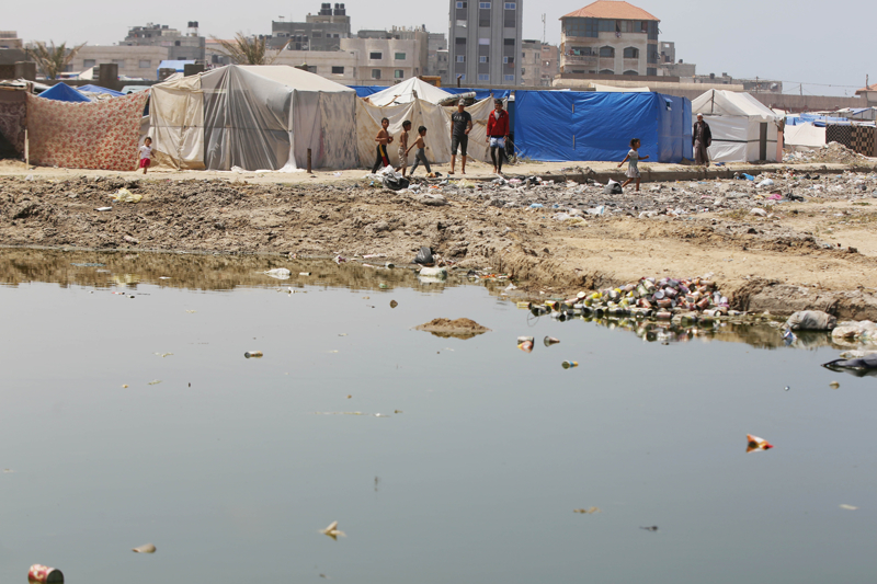 İsrail'in abluka ve saldırıları altındaki Gazze Şeridi'ne çöp yığınları ve kanalizasyon suları Filistinlilerin sağlığını tehdit ediyor. Saldırılar nedeniyle Gazze'nin orta kesimindeki Deyr Al Balah kentine göç etmek zorunda kalan Filistinliler, kaldıkları düzensiz kamplarda toplanmayan çöp ve yol kenarlarına biriken kanalizasyon suları nedeniyle salgın hastalık riskiyle de karşı karşıya.