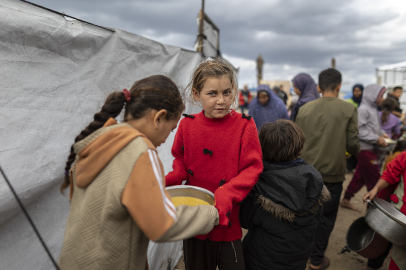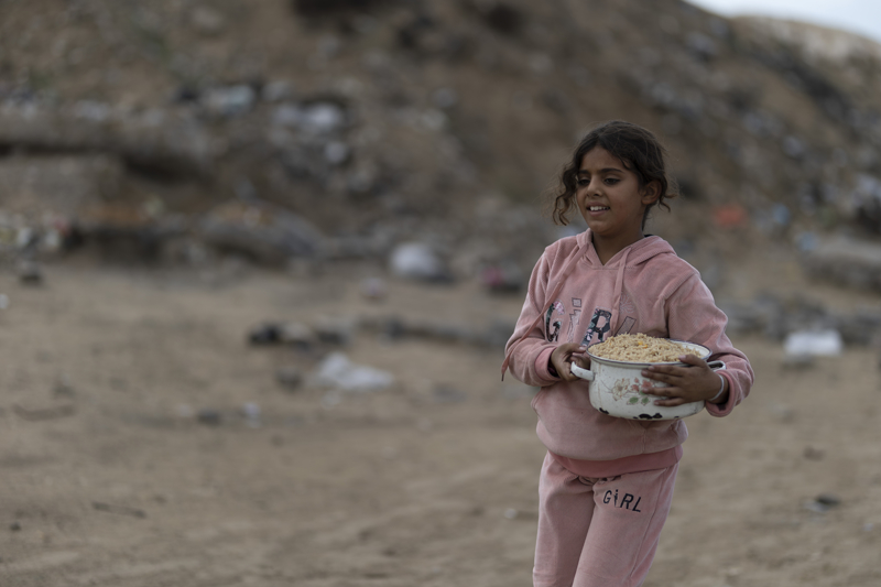 Gazze kentinin batısında bir hayır kurumu tarafından İsrail saldırıları sonucu yerinden edilmiş Filistinlilere sıcak yemek dağıtımı yapıldı. Dağıtım sırasında aralarında kadın ve çocukların da bulunduğu çok sayıda kişi yoğunluk oluşturdu.