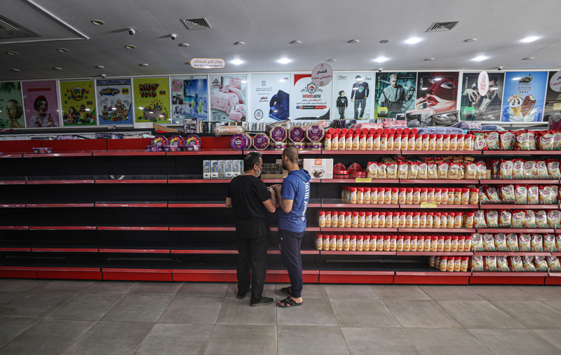 Gazze'nin Han Yunus kentindeki bir markette, temel gıda reyonlarının boşaldığı gözlendi.
