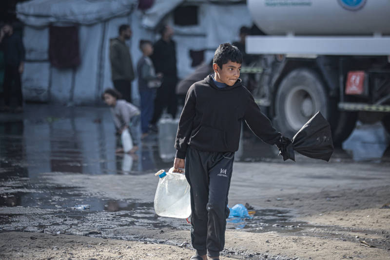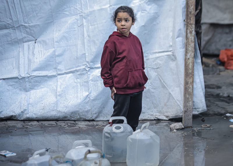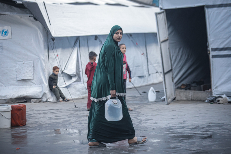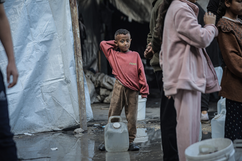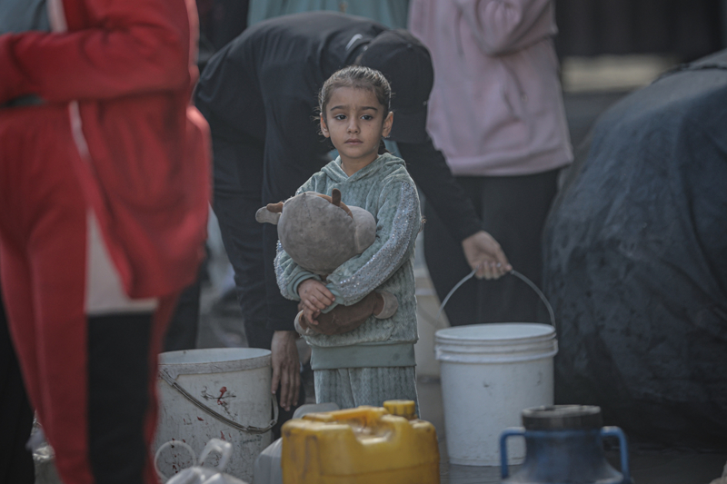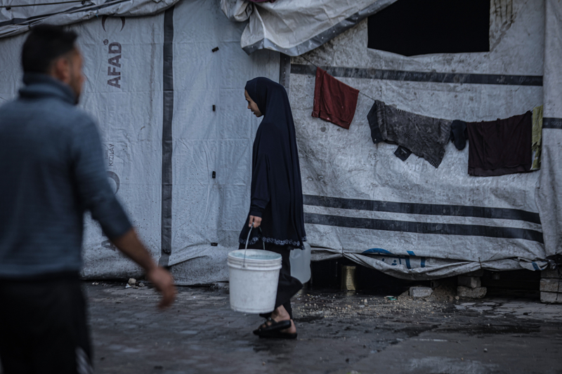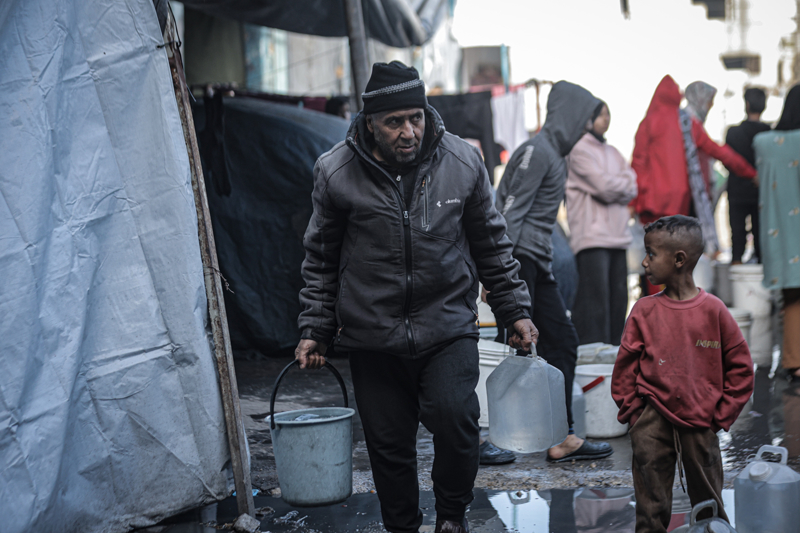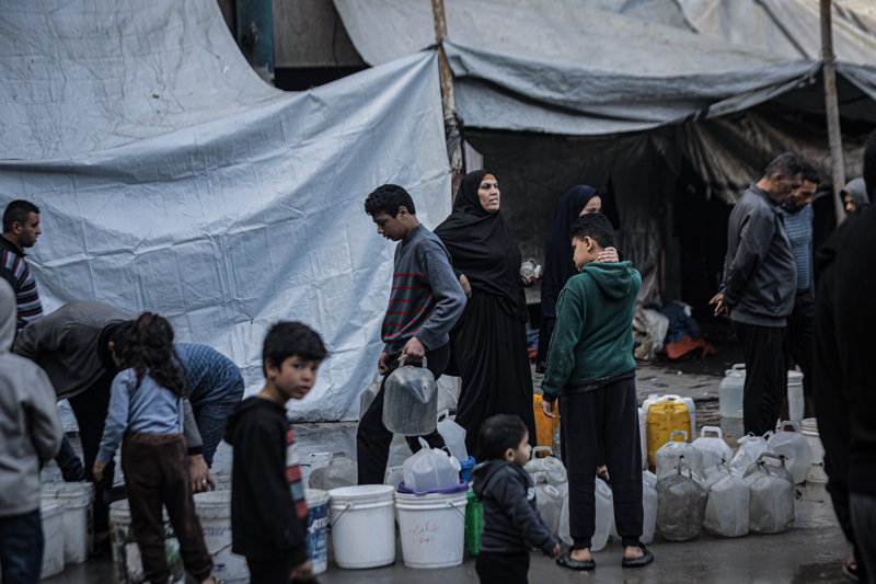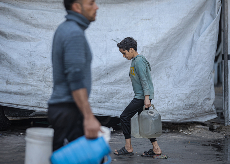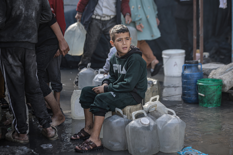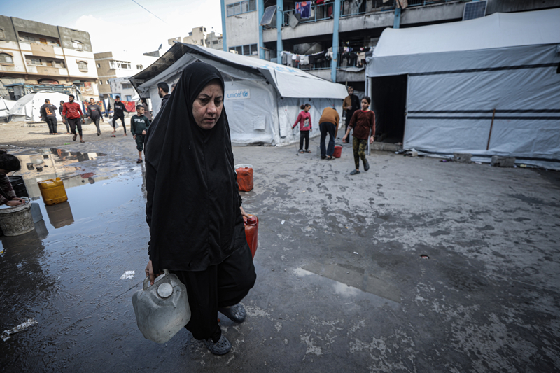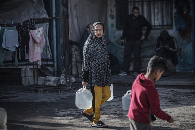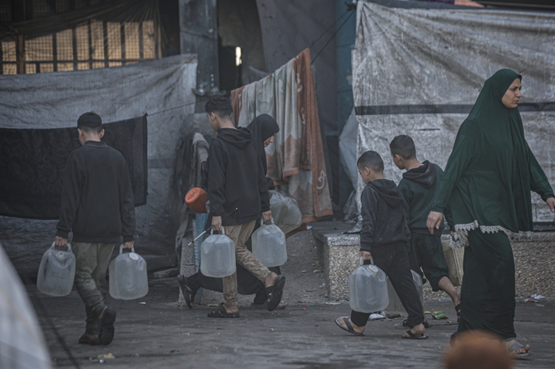 İsrail'in Gazze Şeridi'ne düzenlediği saldırılar sonucu altyapı ve su kuyularının ağır hasar görmesi nedeniyle su krizinin yaşandığı Gazze kentinin Rimal Mahallesi'nde, yerinden edilen Filistinlilerin kaldığı bir okula tankerle getirilen içme suyu dağıtıldı.