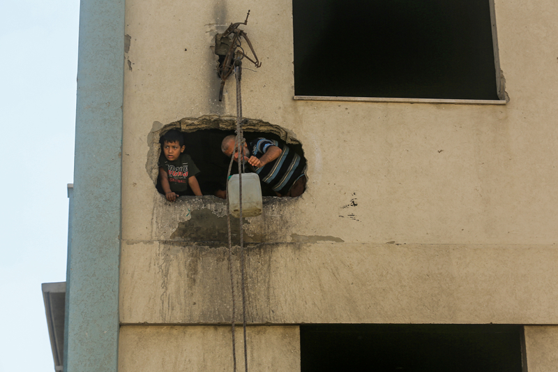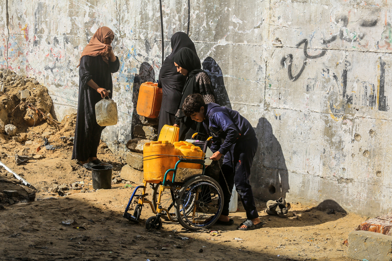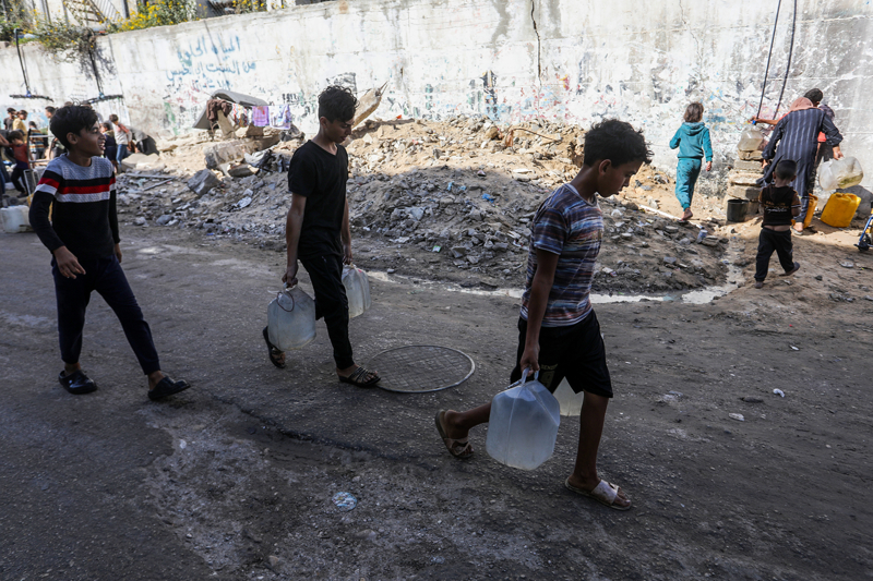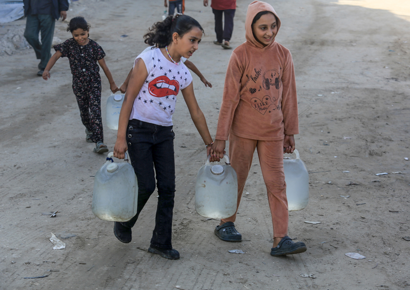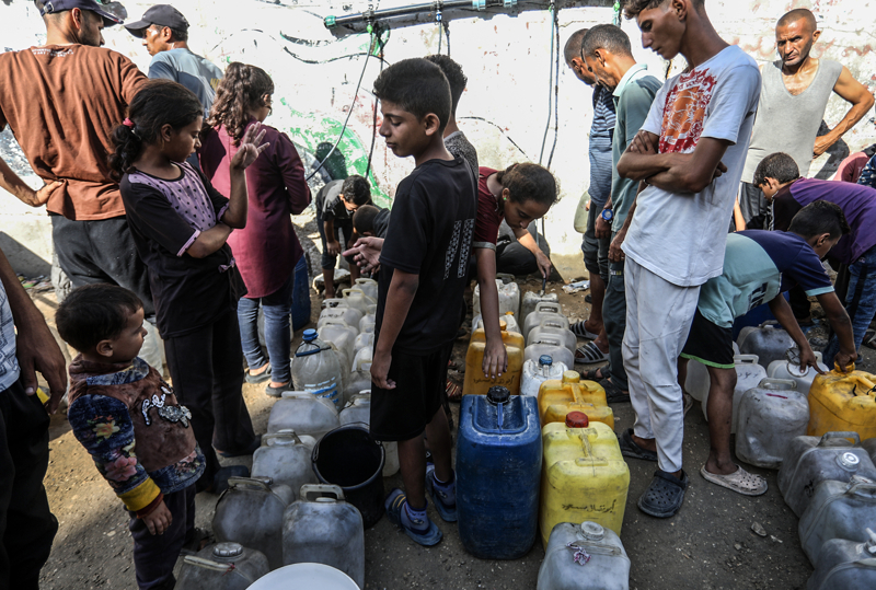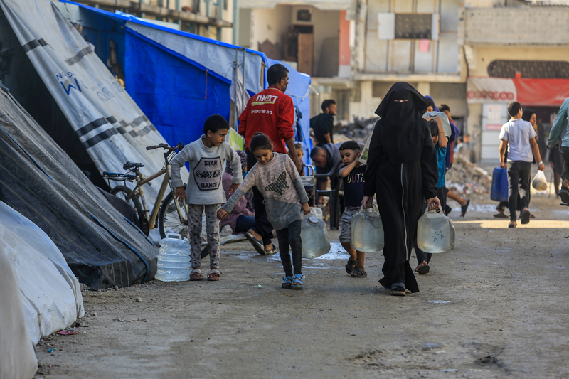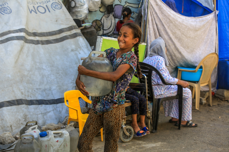 Han Yunus'taki Filistinliler, tankerlerden bidonlara doldurdukları suları çadırlarına ve enkaz halindeki evlerine taşıyor.