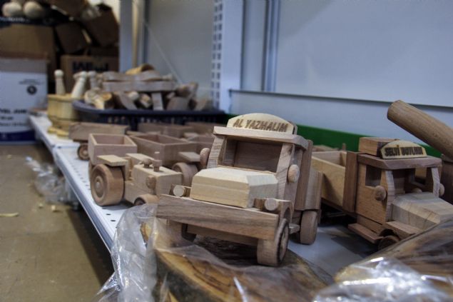 Ahşap malzemeyi tornasında şekillendiren 57 yaşındaki Ekrem Usta, bunu boyayıp iple bütünleştirerek oyuncağa dönüştürdü.